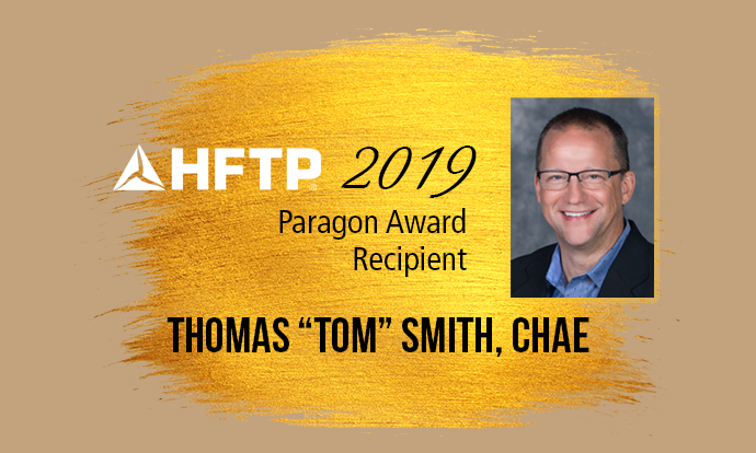 Anyone who knows Thomas (“Tom”) Smith, CHAE knows that he loves his Green Bay Packers, his family, volleyball and dancing. They also know that he puts his heart and soul into everything he does — and that includes his long-standing membership with Hospitality Financial and Technology Professionals (HFTP). That is why he has justly earned HFTP’s 2019 Paragon Award, in recognition of his significant contributions to the association.